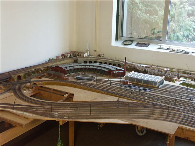 Die ca. 30qm große Anlage mit Kopfbahnhof und großes Betriebswerk, wird